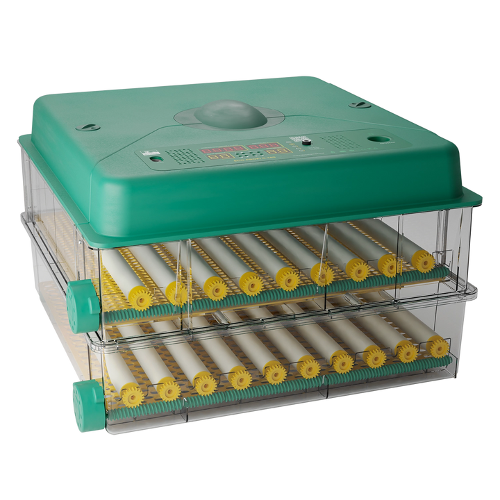 Umiditatea este simplu de ajustat datorita sistemului extern de umplere cu apa, care minimizeaza fluctuatiile. Incubatorul include un afisaj digital pentru nivelul de umiditate, oferindu-va control deplin in orice moment.