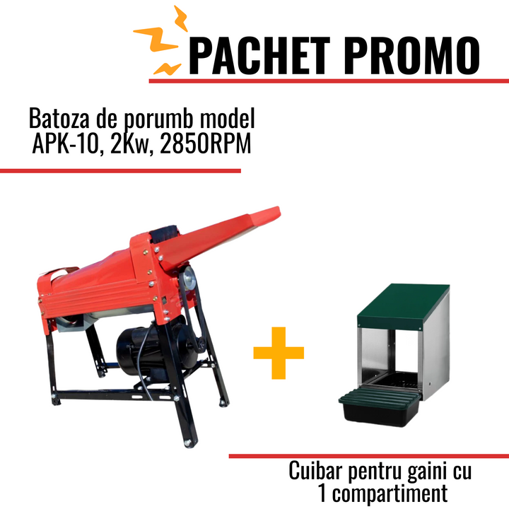 Pachet Promo: Batoza de porumb model APK-10, 2Kw + Cuibar pentru gaini cu 1 compartiment MG01 (fara picioare)