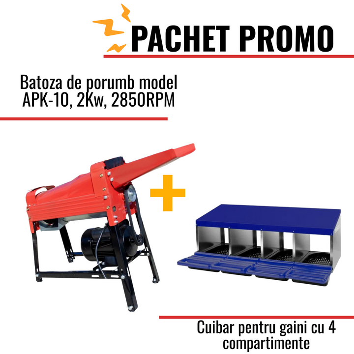Pachet Promo: Batoza de porumb model APK-10, 2Kw + Cuibar pentru gaini cu 4 compartimente