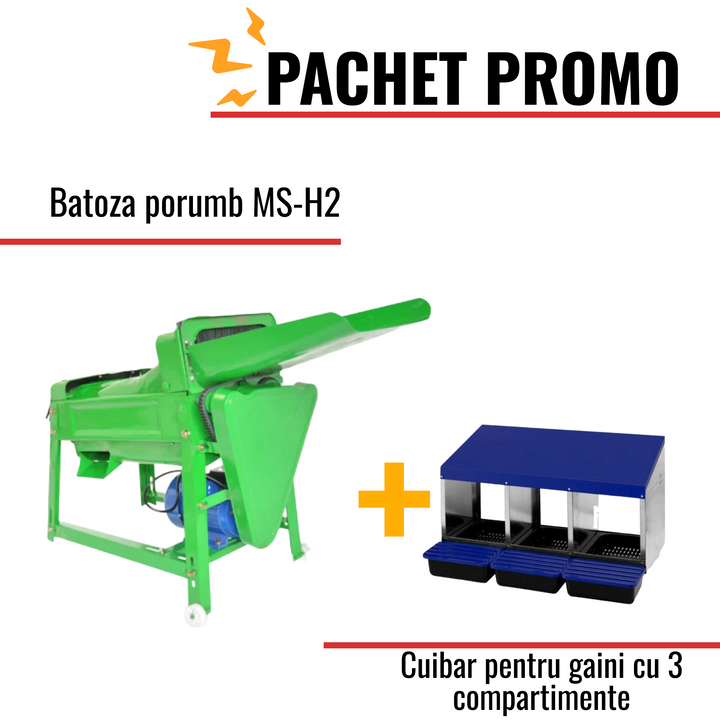 Batoza de porumb MS-H2 (cu motor) este un produs robust, eficient si usor de utilizat, fiind conceput pentru curatarea boabelor de porumb de pe stiuleti depasunati.