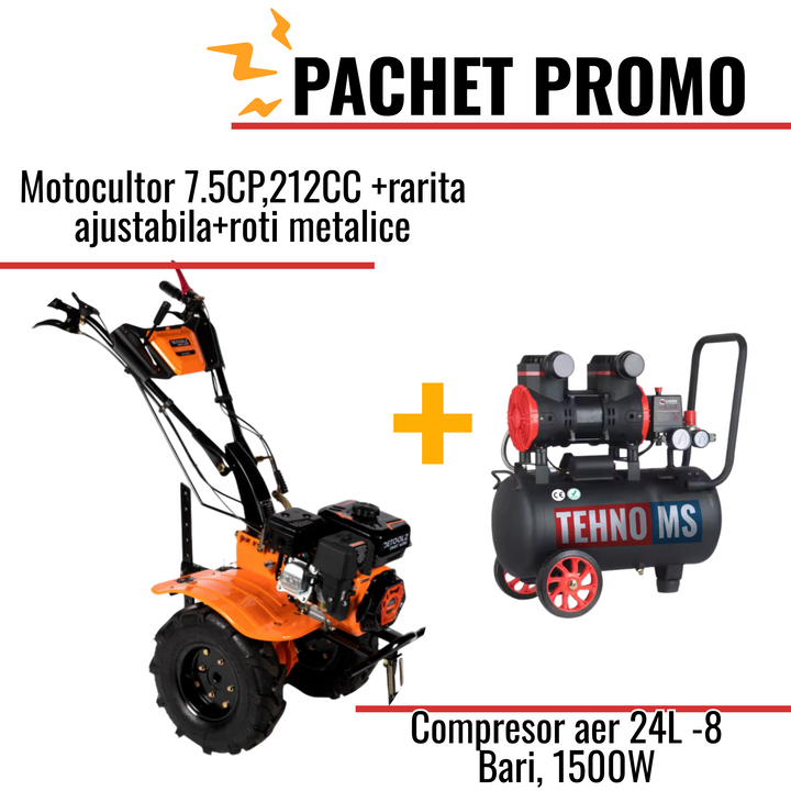 Motocultor 7.5CP, 212CC, rarita ajustabila, roti metalice, Detoolz DZ-M125 are dimensiuni reduse, este usor, multi-functional si foarte eficient in procesul de pregatire a solului pentru cultivare. Este echipat cu un motor in 4 timpi, monocilindru, OHV racit cu aer cu o capacitate cilindrica de 212CC, dezvoltand o putere de 7,5CP si aprindere TCI (Transistor Controlled Ignition). Produsul are o structura simpla, depanarea este usoara si are un consum mic de carburant; este produsul ideal pentru microagricultura.
