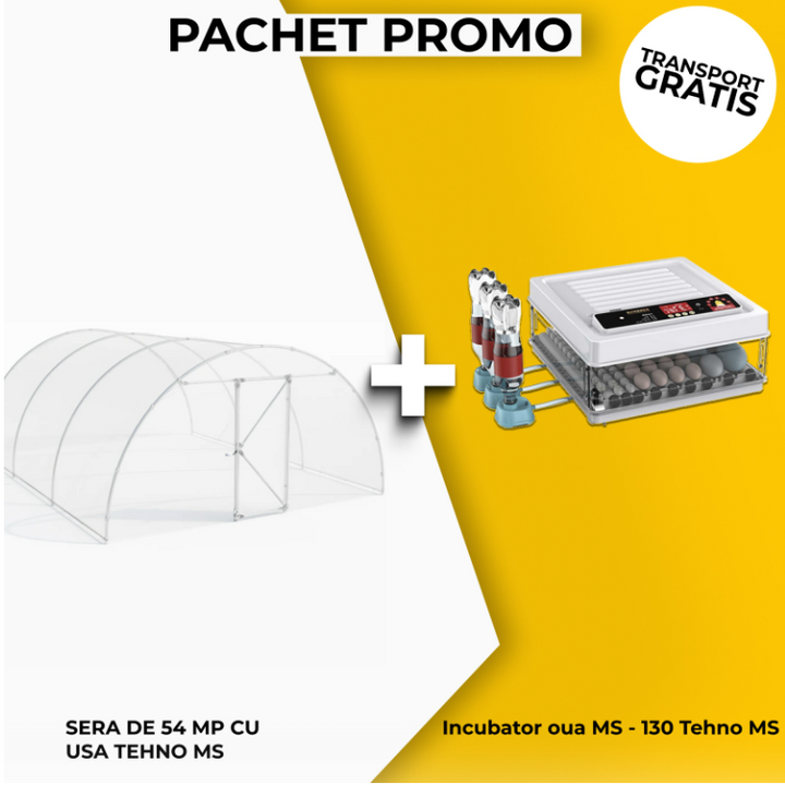 !! NU SE OFERA MONTAJ !!Sera de gradina 54 mp Tehno ms este ideala pentru infiintarea culturilor de primavara, pentru culturile de vara, toamna si iarna. Cu cei 54 mp se asigura spatiu suficient pentru insamantarea, rasadirea si cresterea legumelor si plantelor. Plantele vor fi protejate adecvat de vant, ploaie, grindina, zapada, lumina puternica a soarelui si de daunele provocate de pasari. Pelicula / folia, care vine la pachet cu scheletul metalic al serei, ajuta la cresterea optima a plantelor si la protejarea acestora de fluctuatiile de temperatura care ar putea afecta dezvoltarea lor.