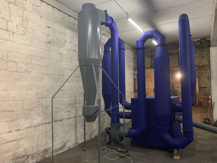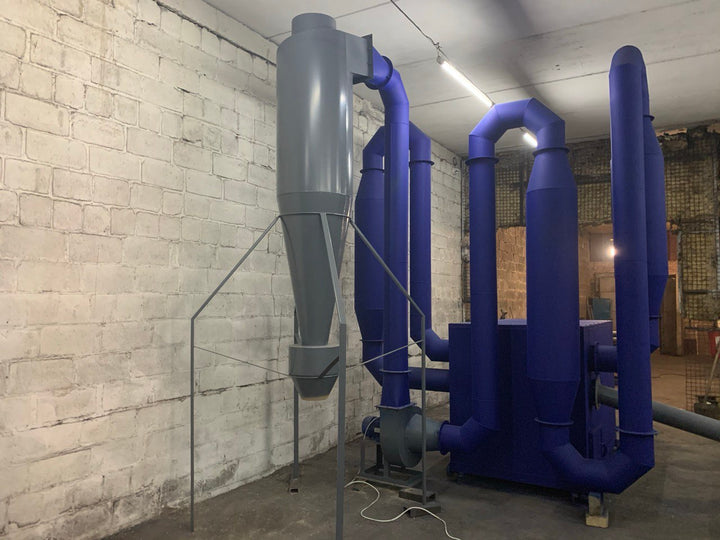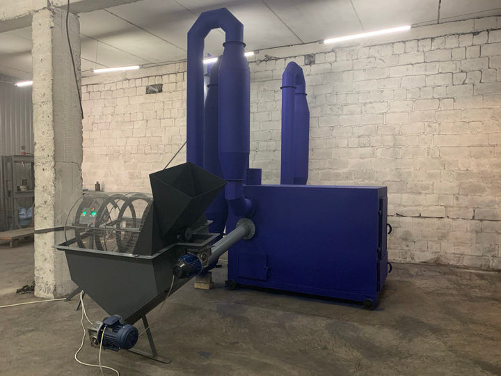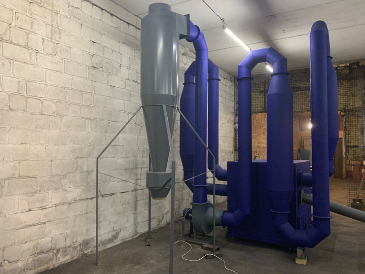 Uscator aerodinamic SK 500, cu o capacitate maxima de pana la 500 kg/ora, este conceput pentru uscarea preliminara a rumegusului pentru granulare si brichetare ulterioara. Kitul include un cuptor fara caramizi refractare, o sita cu alimentare uniforma, un panou de control si complexul de uscare in sine.