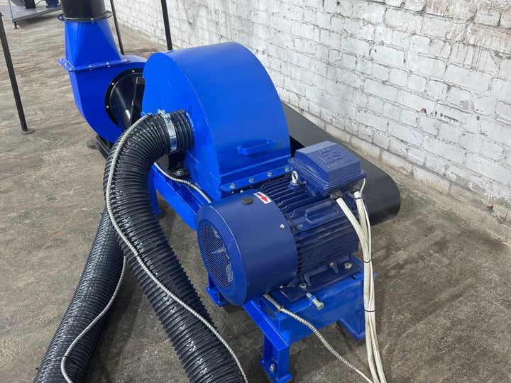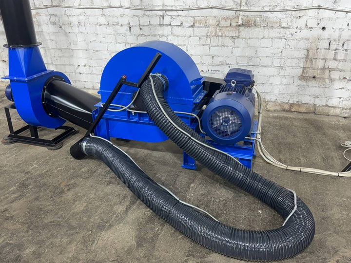 Materia prima intra in tocator prin aspirarea acesteia cu aer printr-un furtun ondulat. Pentru aspirare, tocatorul are un ventilator separat de 4 kW.