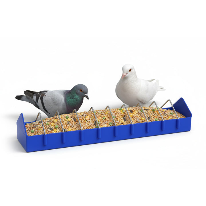 Hranitoare pasari, porumbei 100 cm Avantaj: Flexibil si durabil Non-toxic si prietenos cu mediul Culoare: Albastru Scop: hranitor pentru a trece de curte Greutate: 2 kg Hranitor plastic 100 cm Lungime...