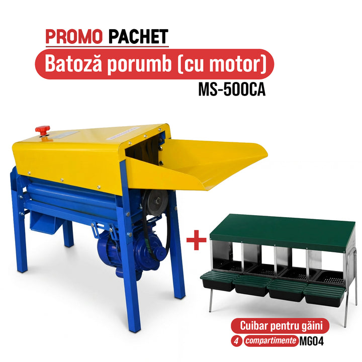 Batoza de porumb MS-500CA (cu motor) este un produs robust, eficient si usor de utilizat, fiind conceput pentru curatarea boabelor de porumb de pe stiuleti depasunati.