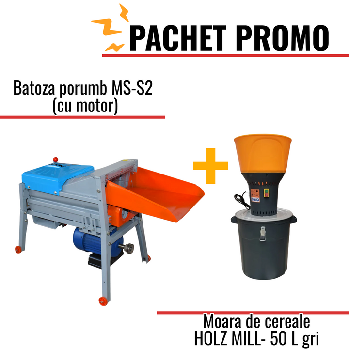 Pachet Promo: Batoza porumb MS-S2 (cu motor) + MOARA DE CEREALE HOLZ MILL 50L GRI - Tehno ms