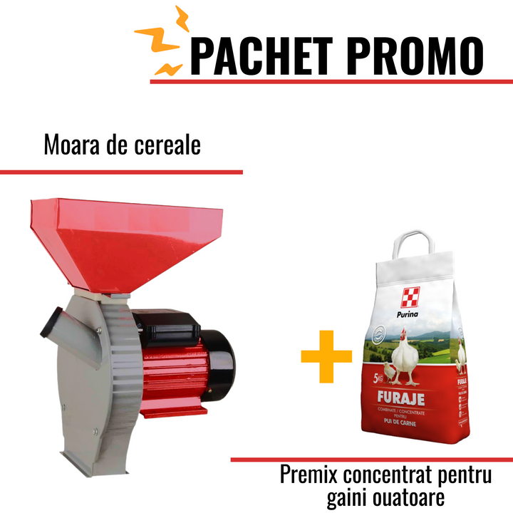 - Moara este ideala pentru macinarea diverselor tipuri de materii prime: cereale, grau, porumb, secara, soia si chiar stiuleti de porumb intregi, pentru a obtine uruiala sau malai pentru hrana animalelor sau a pasarilor.