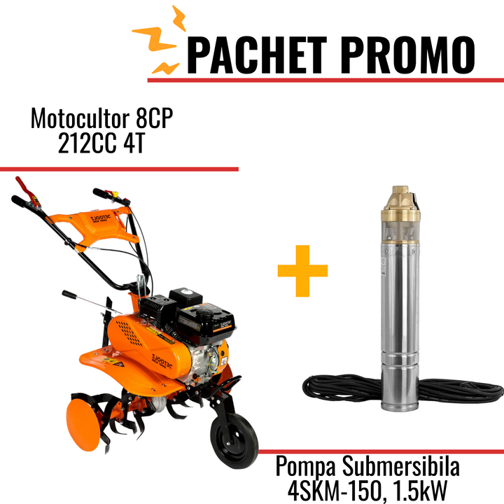 Motocultor 8CP 212CC 4T, Detoolz DZ-M150 are dimensiuni reduse, este usor, multi-functional si foarte eficient in procesul de pregatire a solului pentru cultivare. Este echipat cu un motor in 4 timpi, monocilindru, OHV racit cu aer cu o capacitate cilindrica de 212CC, dezvoltand o putere de 8CP si aprindere TCI (Transistor Controlled Ignition). Produsul are o structura simpla, depanarea este usoara si are un consum mic de carburant; este produsul ideal pentru microagricultura.