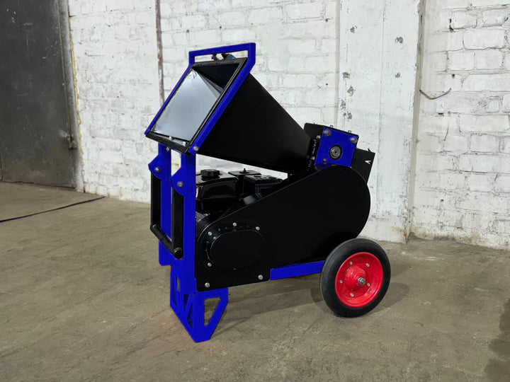 Tocatorul functioneaza cu un motor pe benzina de 7 CP si este disponibil si cu un motor electric de 5,5 kW.